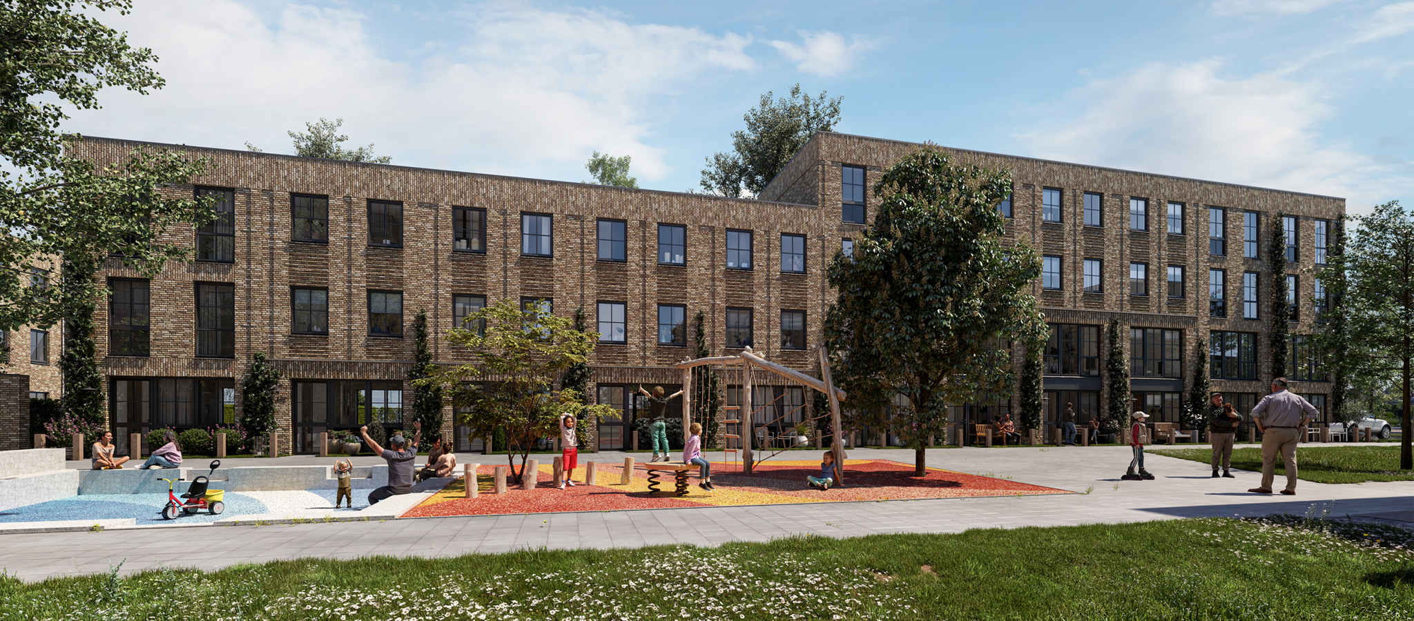 Bekijk nu de eerste twee definitieve artist impressions van Nieuw Houtwijk! In deze sneak preview zie je het exterieur en omgeving van de Tuinwoningen en Dekwoningen in detail. Je krijgt nu een nog beter beeld hoe de stadswoningen eruit gaan zien. Binnenkort delen wij alle exterieurbeelden.